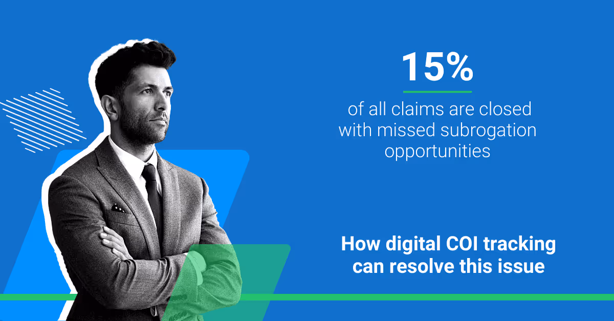 Insurers who actively track their vendors’ COIs are ahead of the game, since they can immediately move forward in the subrogation process. Those who aren’t tracking COIs may find it challenging to collect once there’s a claim.