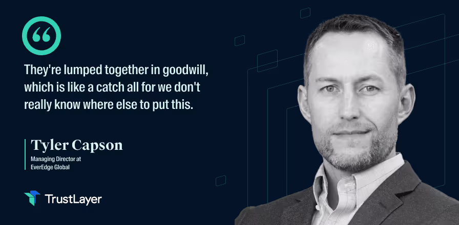 This issue comes from accounting teams not focussing on intangible assets, based on the accounting standard developed in an industrial age. According to Tyler, they are often accounted for in one of three ways: “The first is they're ignored completely because they're not identified. Like you said, you know, if no one's looking at them, you don't know what to look for, you just kind of ignore it. Second, they're lumped together in goodwill, which is like a catch all for we don't really know where else to put this, so we're gonna put this as goodwill. Or last, they're just recorded as a cost”.